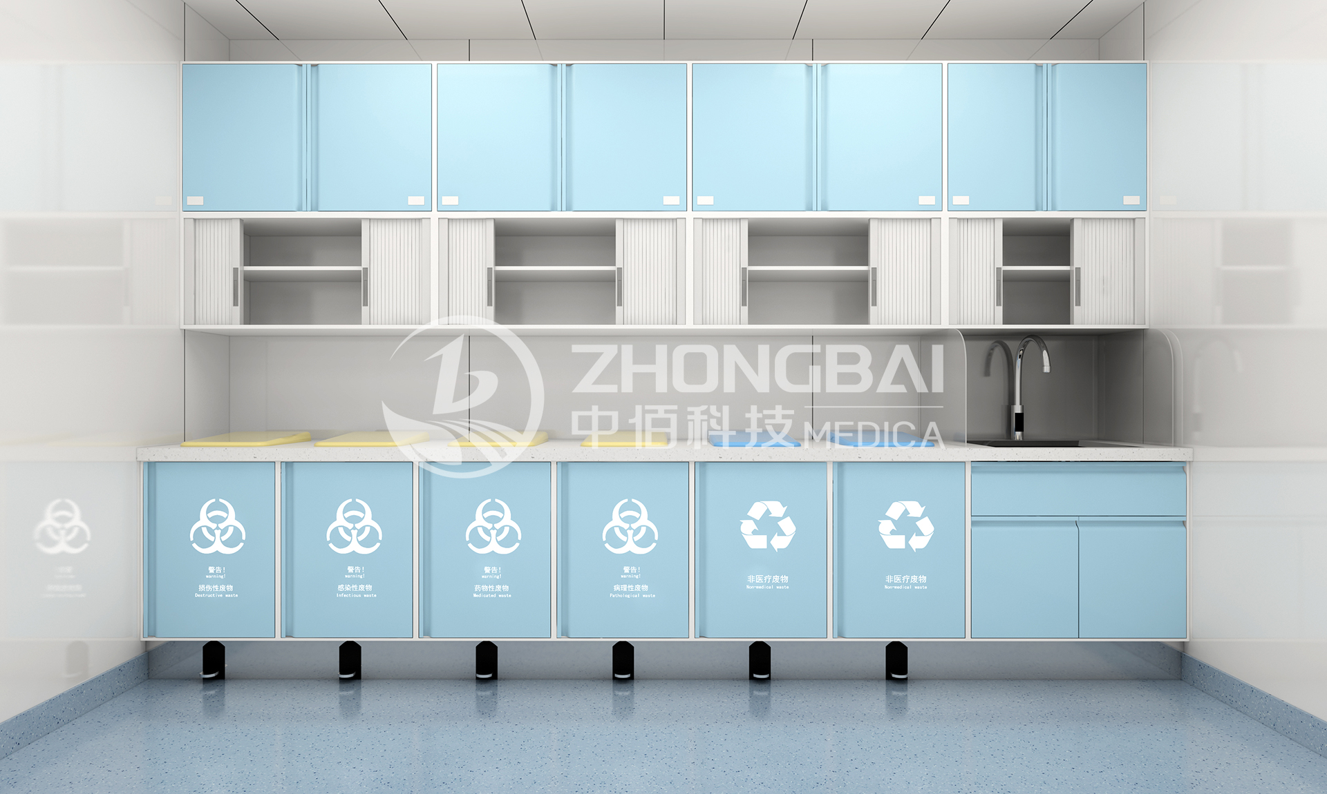 治療室設在護士工作站附近,主要為醫護人員進行治療準備、藥液配置的專用工作室。室內設有專用操作臺,壁柜、藥柜、發藥車等,室內需潔污分區管理。